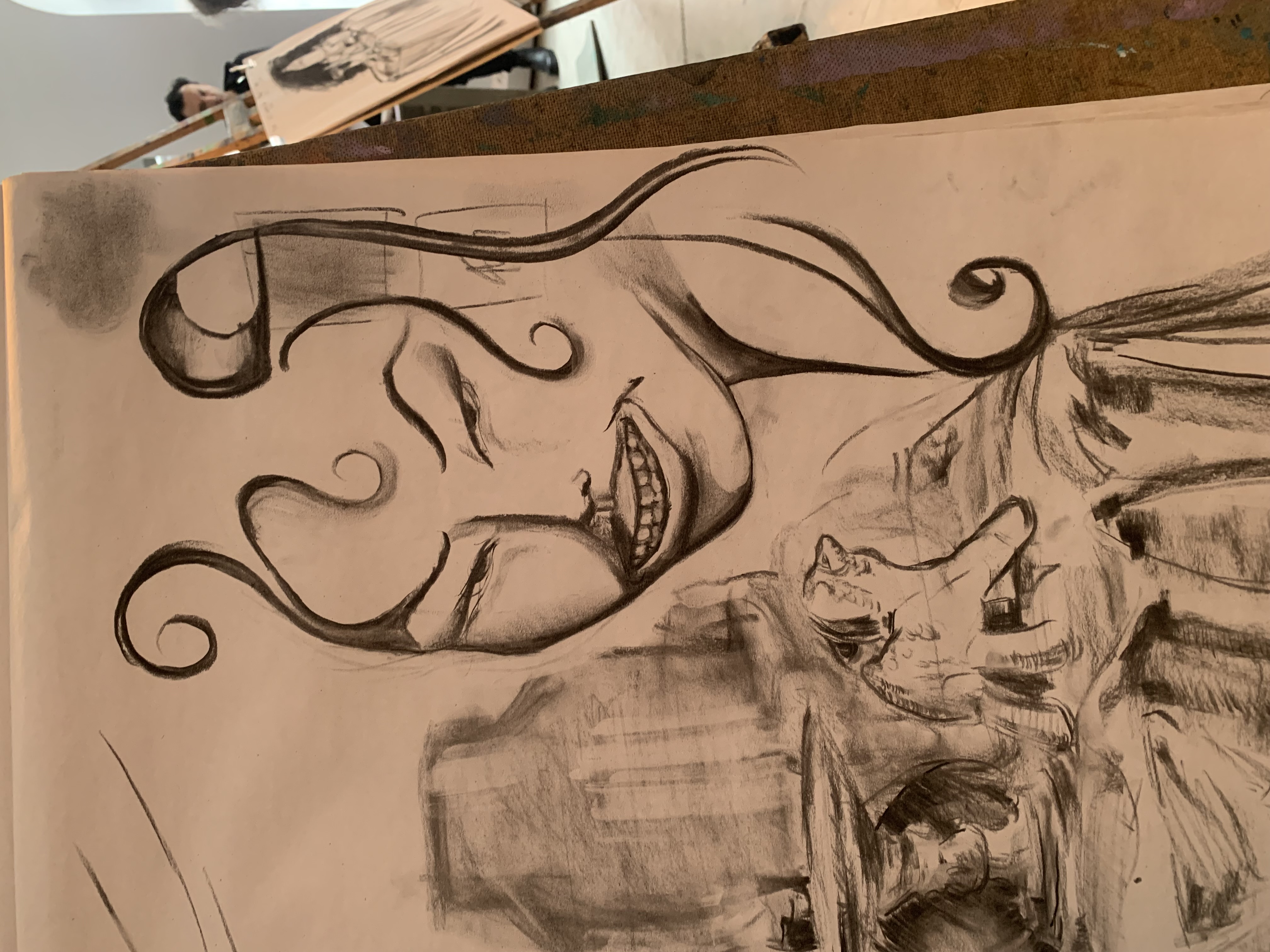 I’m officially a working artist that can pay their rent through art!!!!!!!! This is a collaboration with an artist who is now dead, their son wants me to finished his unfinished work, the lines are done by him while all the colour is me.
